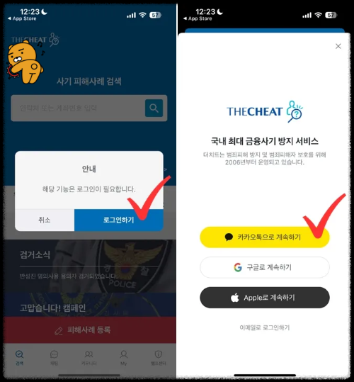 - 조회 전 간단히 로그인해야 합니다. 카카오톡 연동으로 빠르게 가입할 수 있어 번거롭지 않습니다.