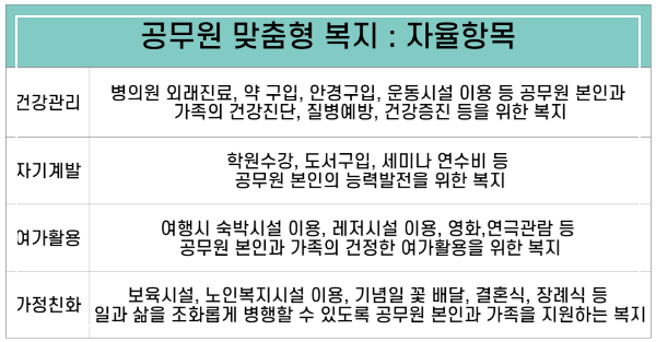 - 모든 공무원에게 동일하게 주어지며, 필수 혜택에 사용할 수 있습니다.