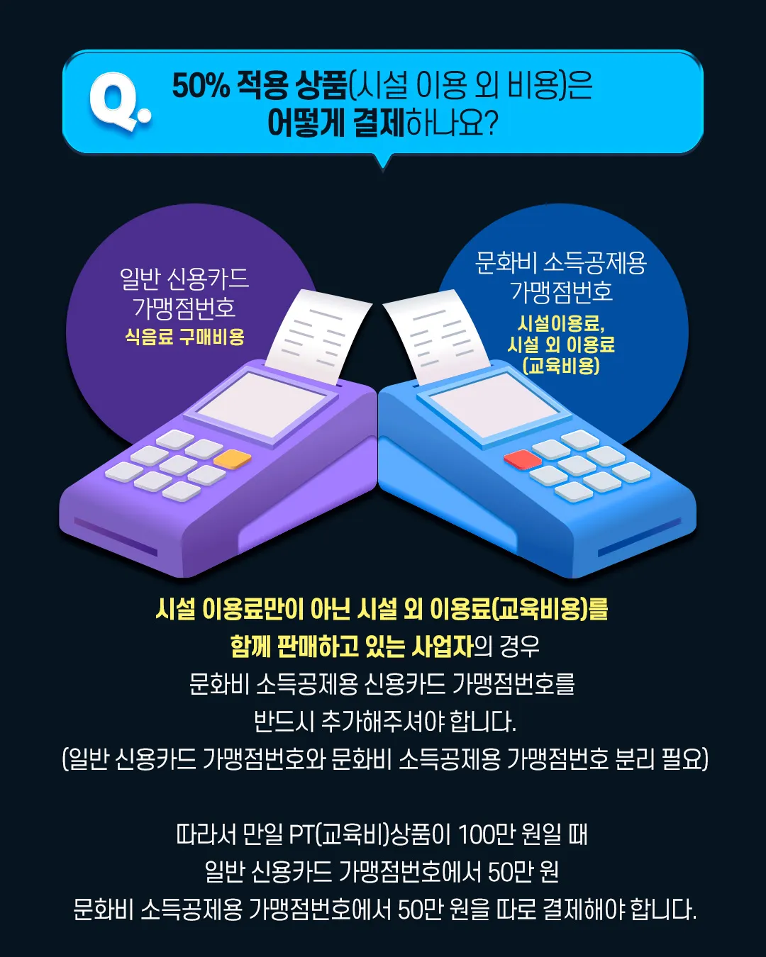 - ⚠️ 강습료 포함 프로그램 (크로스핏, GX, 필라테스): 교육비로 50% 공제