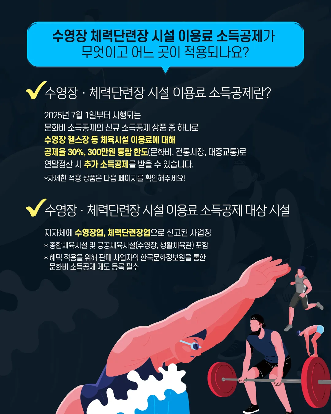 ✔️ 2025년 7월부터 헬스장, 수영장도 문화비 소득공제 대상
