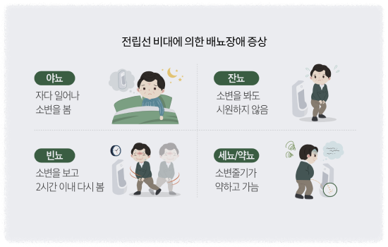 “밤마다 자주 깨서 화장실을 들락거리진 않으셨나요? 소변을 봐도 개운치 않다면, 전립선 비대증이 원인일 수 있습니다.”