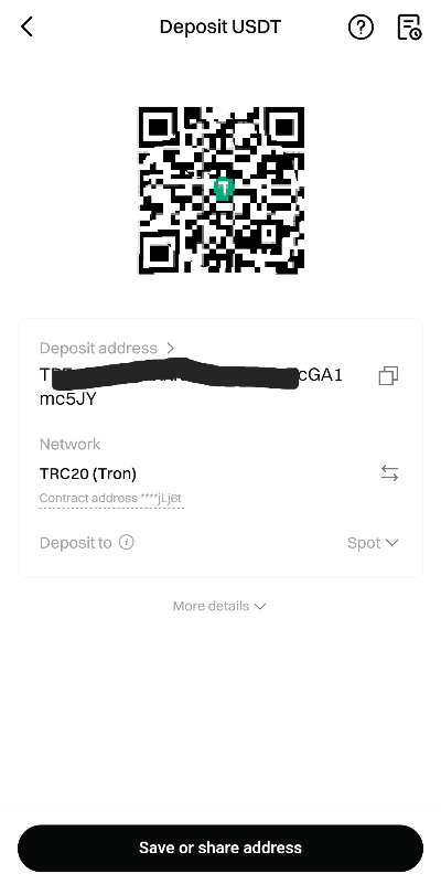- TRC20 네트워크 선택 → 주소 복사