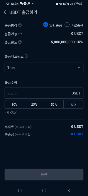 - 메뉴에서 ‘입출금’ → USDT → 출금하기