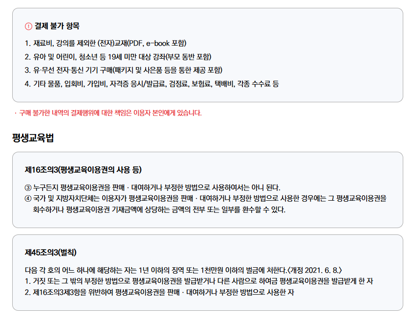 ✔️ 오직 강좌 수강료 + 해당 강좌 교재비만 사용 가능합니다.