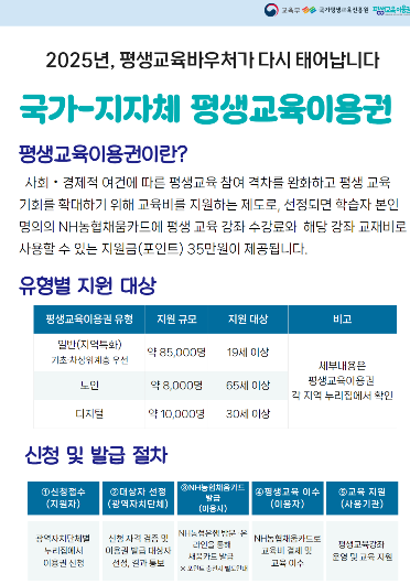 2025년부터 ‘평생교육바우처’가 ‘평생교육이용권’으로 명칭이 변경됐습니다.