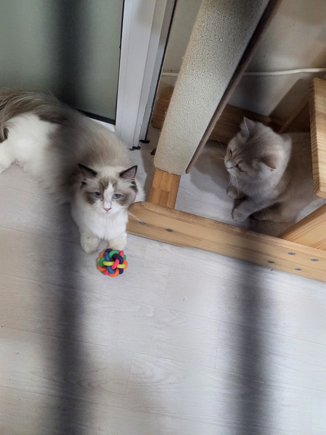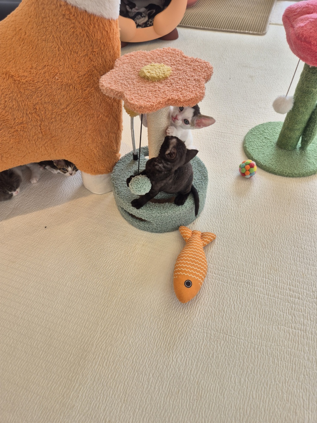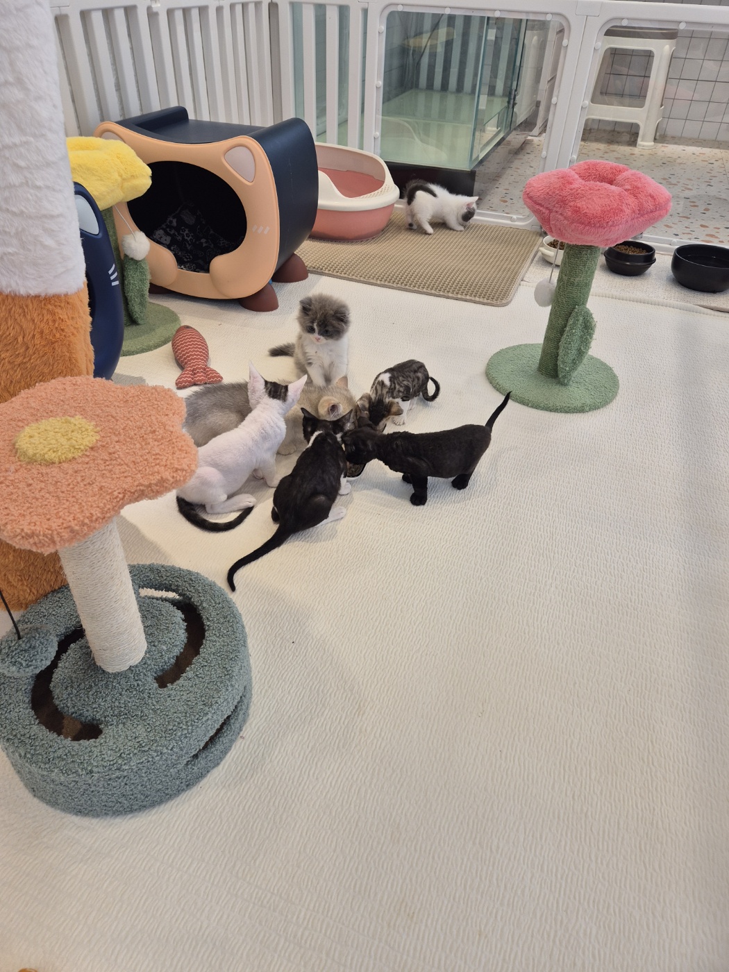 먼치킨과 브리티쉬 아이들이 케이지 없이 뛰어노는 모습이 눈에 띄었어요.