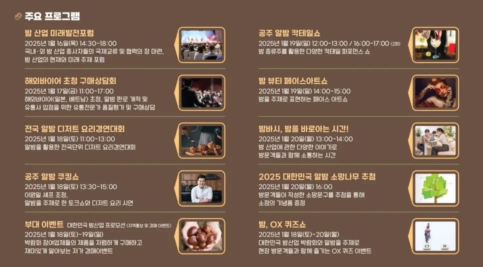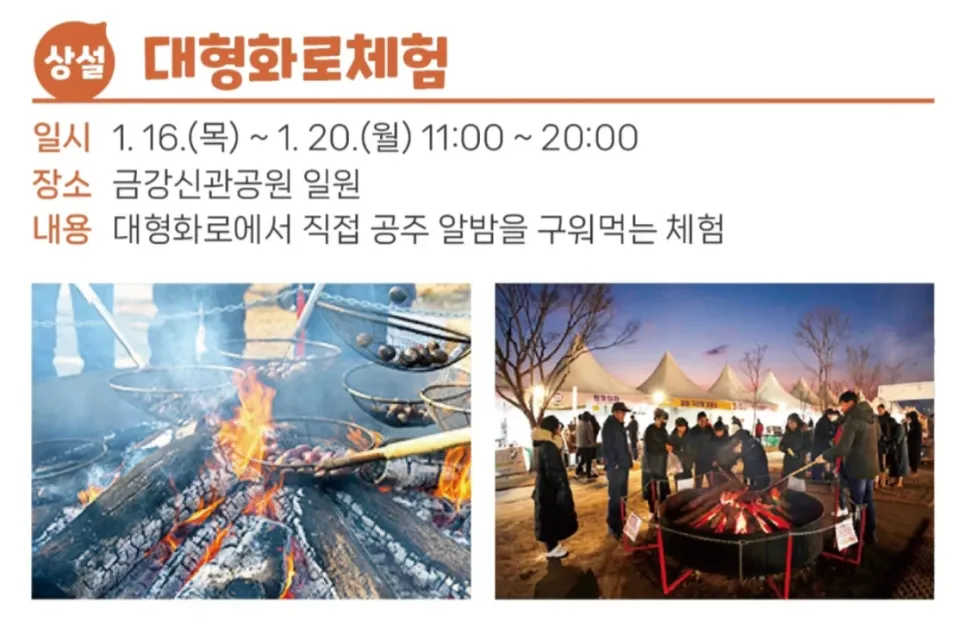 2025 겨울공주 군밤축제는 공주의 따뜻한 정과 겨울의 낭만을 동시에 느낄 수 있는 특별한 시간이 될 거예요. 🌆 꼭 한번 방문해보세요!