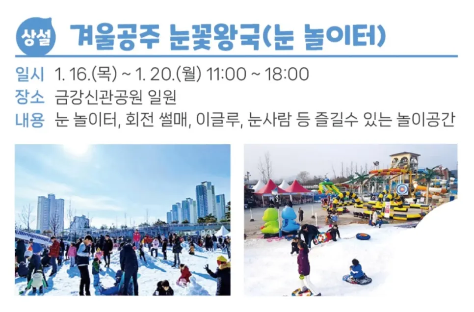 - 겨울 놀이 체험존 (눈썰매, 얼음 조각전 등)